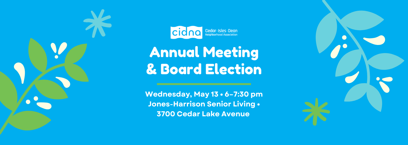 Join CIDNA for our Annual Meeting & Board Election! The event includes a social hour and refreshments, our annual board election, door prize drawing, and engaging speakers including Kevin Norman of Uptown United, City Council Member Elizabeth Shaffer, and Kaydee Kirk of Metro Transit.